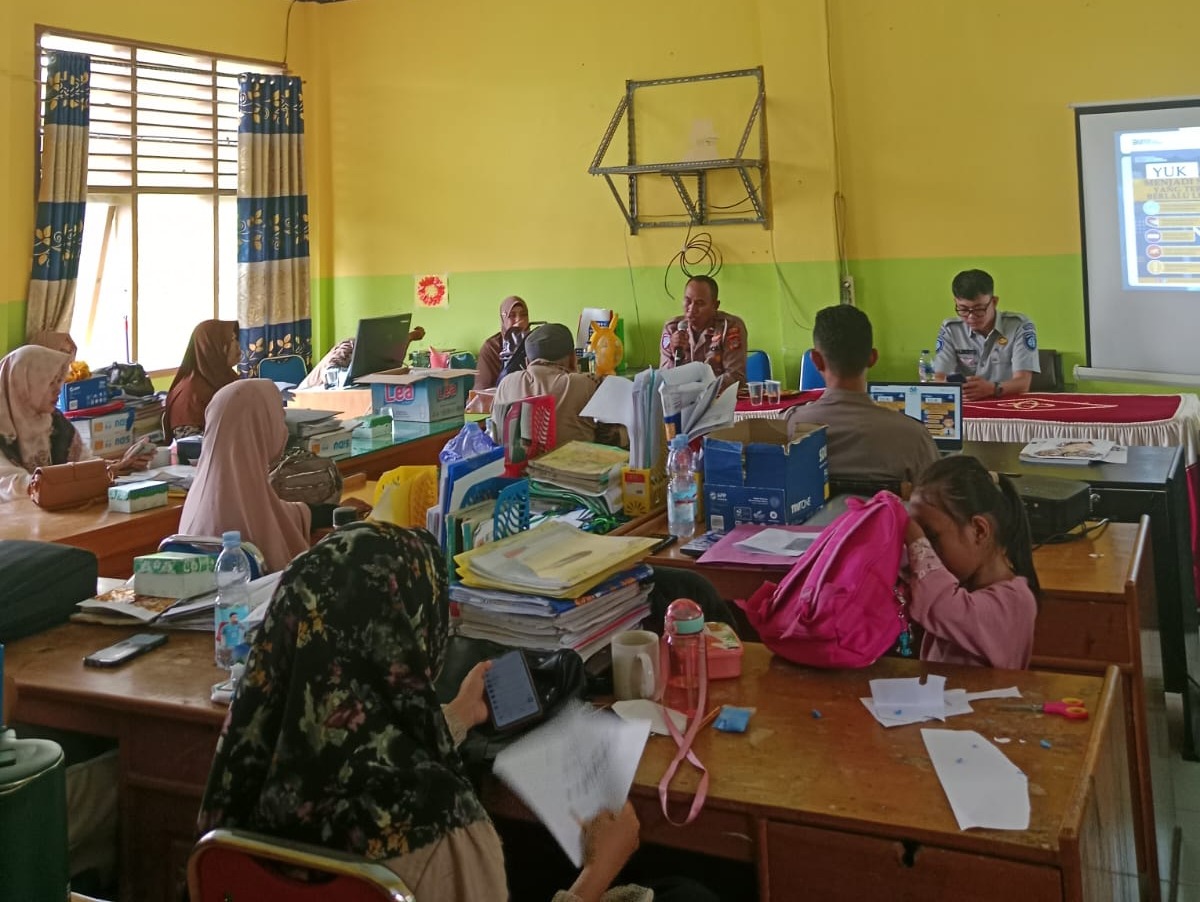 Touna – Unit Kamsel Satlantas Polres Touna bersama Jasa Raharja Cabang Ampana melaksanakan bimbingan dan penyuluhan tentang program pengajar keselamatan berlalu lintas di SDN 1 Ampana Kota, Sabtu (8/2/2025).