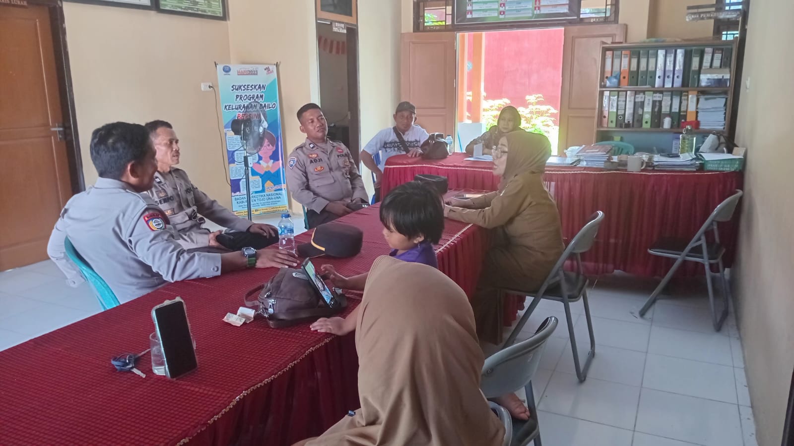 Touna – Sat Binmas Polres Tojo Una Una (Touna) Melaksanakan Sambang dan Tatap Muka dengan Lurah Bailo, serta Pegawai Kelurahan di Kecamatan Ampana Kota. Senin (28/7/2025).