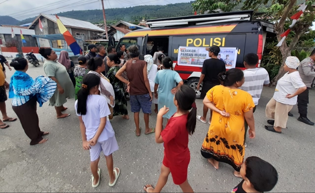 Banggai – Mobil penyuluhan Sat Binmas Polres Banggai diserbu masyarakat saat menjual beras SPHP Bulog di dua lokasi di Kecamatan Luwuk, Jumat (8/8/2025) pagi.