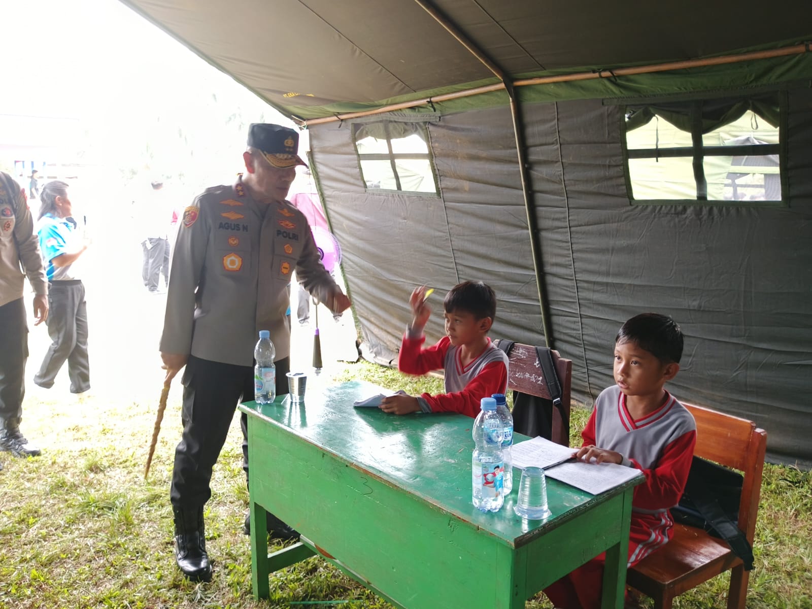 Kapolda Sulteng, Sapa Siswa Belajar di Tenda Sekolah Darurat Desa Tangkura Poso