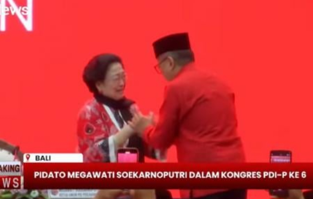 Momen Megawati menangis itu terjadi kala Hasto menaiki panggung tempat Megawati berpidato.