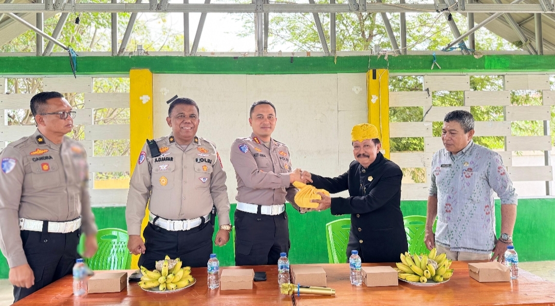 Kombes Pol. Atot Irawan memberikan apresiasi atas kerjasama yang diberikan pemerintah Kelurahan Talise Valangguni bersama lembaga adat untuk mendukung terciptanya Kawasan tertib berlalu lintas.