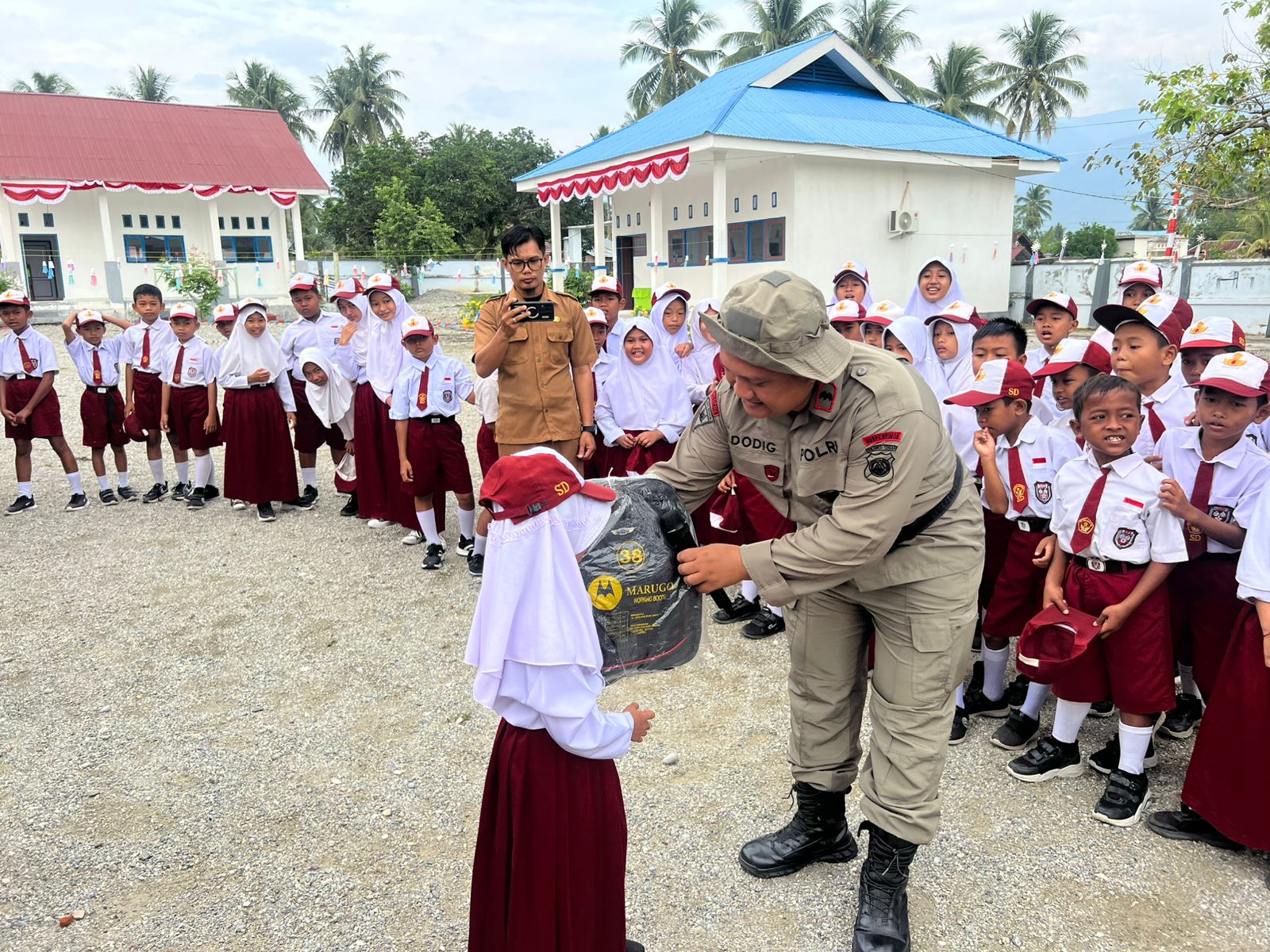 Selain mengikuti jalannya upacara, personel pos kamtibmas juga membagikan sarana kontak berupa tas sekolah dan alat tulis kepada para siswa. Hal ini diharapkan dapat mendukung semangat belajar anak-anak di wilayah tersebut.