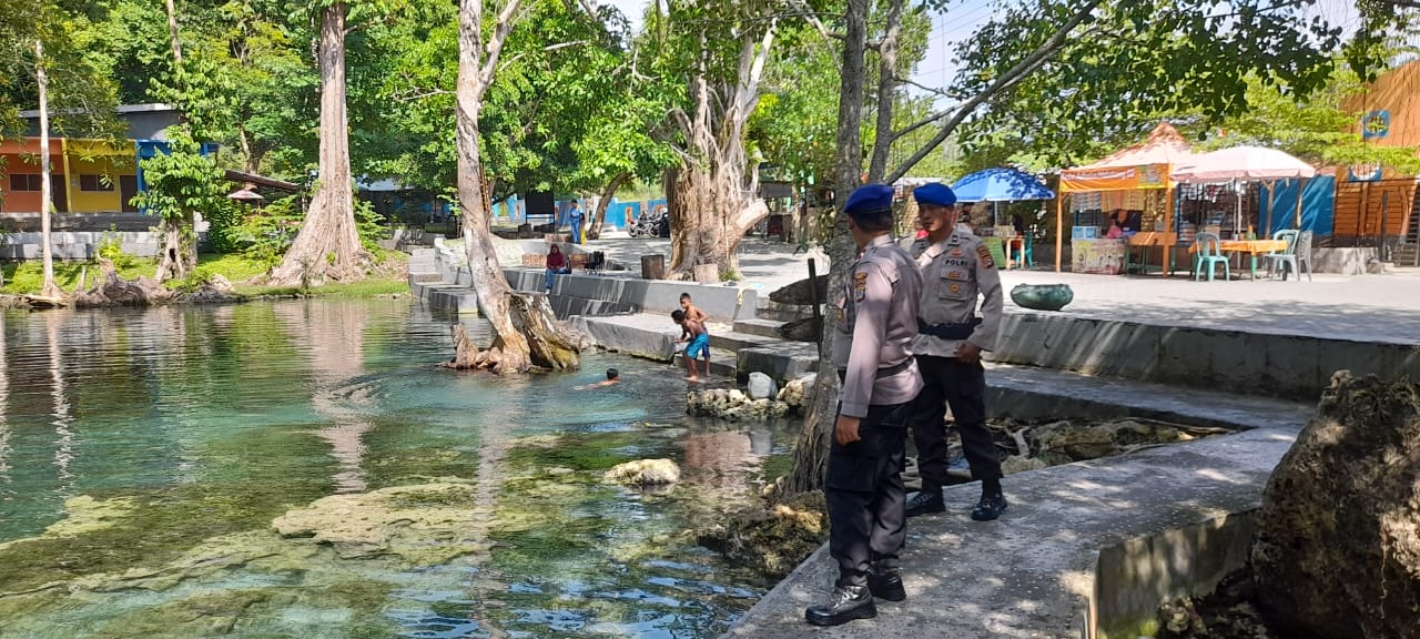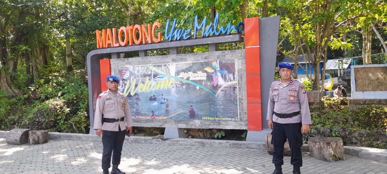 Personel Satpolairud dikerahkan untuk melakukan pemantauan intensif dan menjaga situasi keamanan di sekitar area wisata Permandian Alam Malotong yang ramai dikunjungi masyarakat.