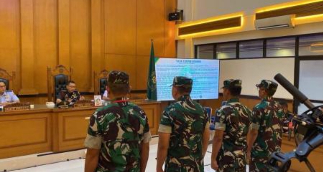 Mereka terlihat berdiri dengan sikap siap di hadapan Majelis Hakim. Setelahnya agenda persidangan dilanjutkan dengan pembacaan surat dakwaan yang dibacakan oleh oditur.