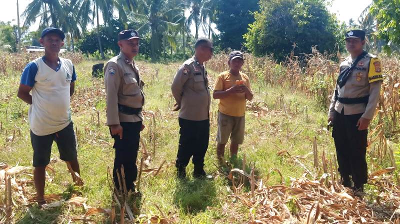 TIME SULTENG – Personel Polsek Ampana Kota melakukan pengecekan langsung terhadap lahan jagung yang tengah memasuki masa panen di Desa Sumoli, Kecamatan Ratulindo, Kabupaten Tojo Una Una, Senin (27/04/2026) pagi.