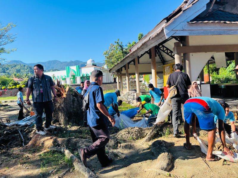 Sambut HUT RI ke-79, Lapas Kelas IIB Ampana Bersihkan Halaman Kantor Bupati Touna